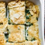 If you have not tried Spanakopita before, you’re in for a treat! Spanakopita is a delicious savory Greek pie made of perfectly crispy layers of phyllo dough and a comforting filling of spinach and feta cheese. I’m sharing my family’s favorite spanakopita recipe, complete with tips, video, and step-by-step photos. Trust me, this is so much easier to make than you think!